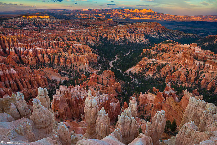 5:45 – Depart for our sunset photo location at another dramatic overlook. We’ll capture the last rays of light as they illuminate the 10,000 foot-high rim of Powell Plateau on the eastern horizon as thousands of colorful pinnacles fill the foreground beneath us. This will involve an easy walk of 1/2 mile from our lodge.
